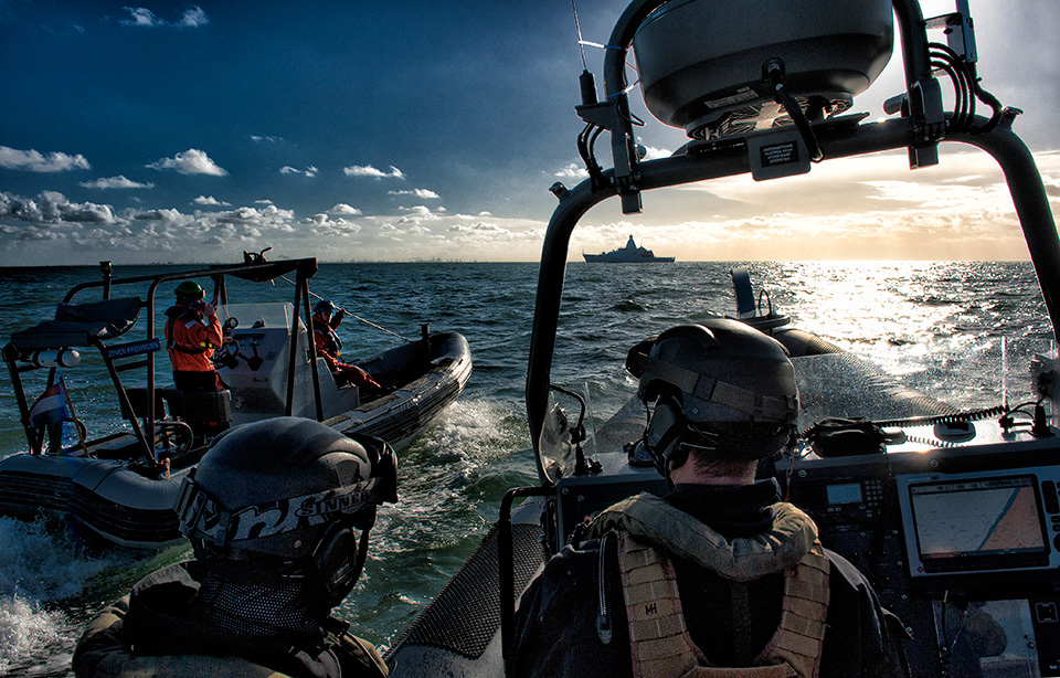 De marine patrouilleert voor de kust bij Den Haag. Foto: John van Helvert