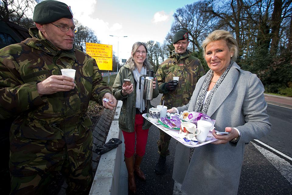 Reservisten worden getrakteerd tijdens het bewaken van de openbare weg. Foto: sergeant-majoor Gerben van Es