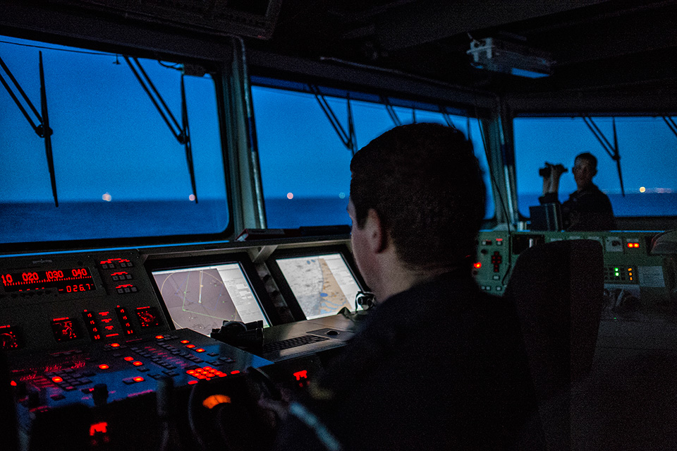 De nachtploeg op de brug van Zr. Ms. Holland. Foto: John van Helvert