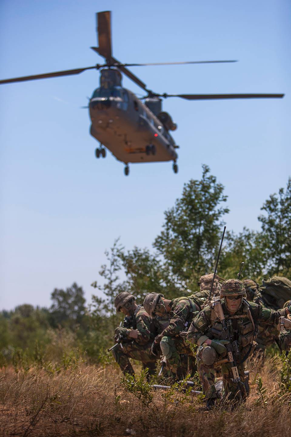 Zodoende vliegt Sander ook een keer met een ploeg volledig bepakte Duitse infanteristen. “In combinatie met de extra brandstoftank met pantserplaten kwamen we op een gewicht van 22 ton. Leeg weegt de Chinook zo’n 14 ton. Zo maximaliseer je de vliegtechnische trainingswaarde.”