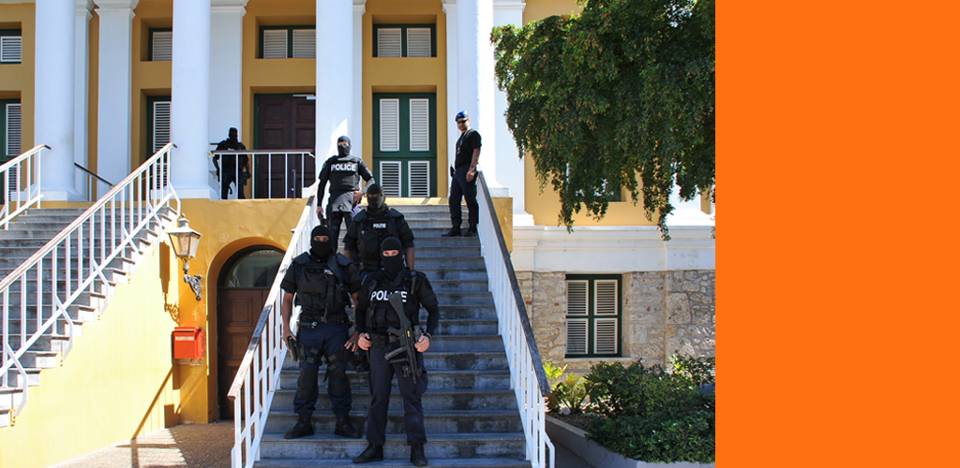 Politie Curaçao tijdens het proces voor de moord op Helmin Wiels. De populaire