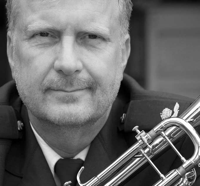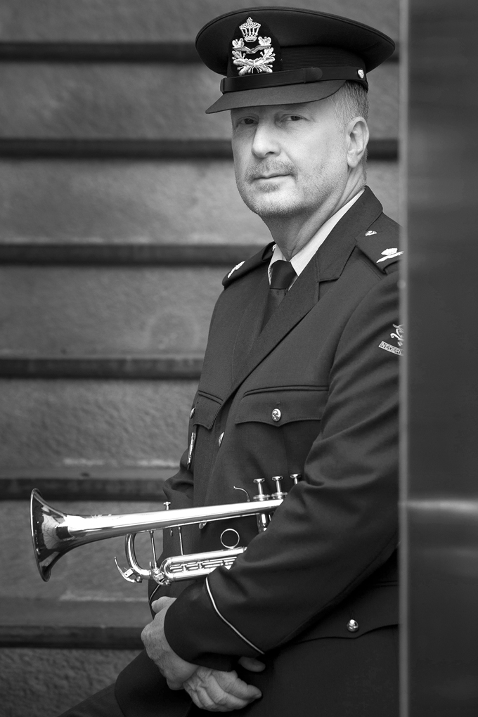 Adjudant Hans Bloemen (56) uit Tricht, trompettist bij de Kapel van de Koninklijke Luchtmacht.