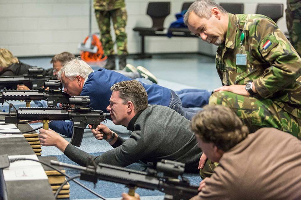 Met trillende benen over een evenwichtsbalk 20 meter boven de grond om vervolgens via een kabel naar beneden te zoeven, een Colt C-7 geweer in je handen gedrukt krijgen en (in een simulator) een oefening draaien of met collega’s in het kader van leiderschapstraining een hindernisbaan bedwingen.