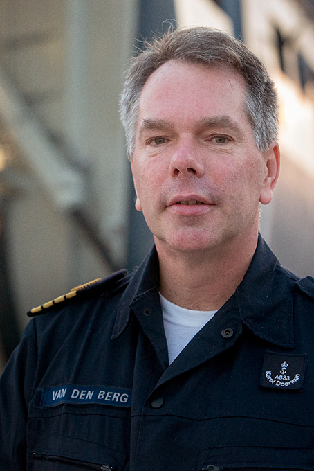 Commandant van de Karel Doorman, kapitein-ter-zee Peter van den Berg: “We gaan hier dus geen handjes schudden.”