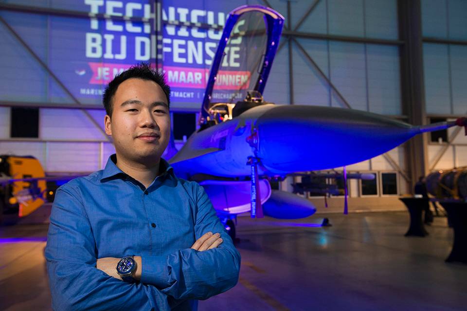 Voor student lucht- en ruimtevaarttechniek Frankie Liu (25) staat het onomstoten vast: hij wil technisch officier vliegtuigonderhoud worden. “En dan het liefst van de jachtvliegtuigen.” In augustus dit jaar rondt hij zijn stage af op vliegbasis Leeuwarden. Daar doet hij onderzoek naar het onderhoudsadministratiesysteem van de F-16. De Rotterdammer heeft er de tijd van zijn leven. “Sinds mijn 6e heb ik al interesse in vliegtuigen en ik bezoek al zolang ik me kan herinneren de open dagen van de luchtmacht. Het kameraadschap, het ‘1 team, 1 taak’-gevoel vind ik zo gaaf.”