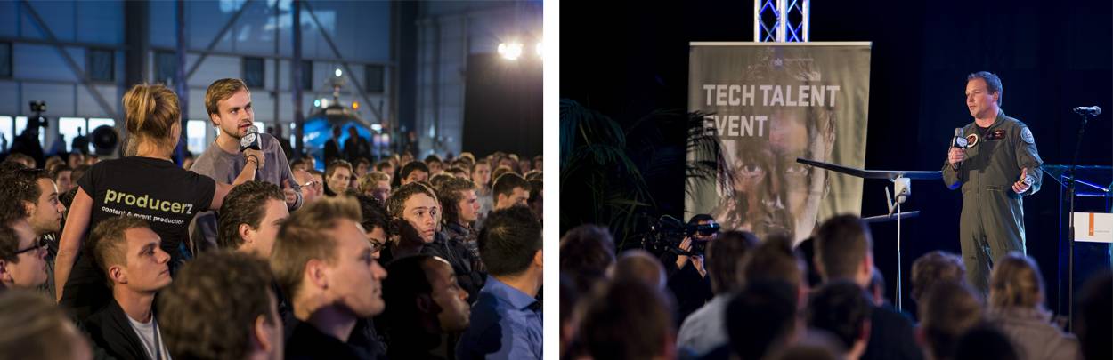 Zo’n 300 aanstormende talenten in de techniek bezochten op de eerste woensdag van december het Tech Talent Event van Defensie. In de KDC-10 hangaar op vliegbasis Eindhoven lieten de HBO- en universitair studenten zich uitgebreid informeren over de carrièremogelijkheden bij de krijgsmacht. Het niet alledaagse en afwisselende werk samen met de grote mate van kameraadschap binnen de organisatie spreekt de meeste studenten erg aan.