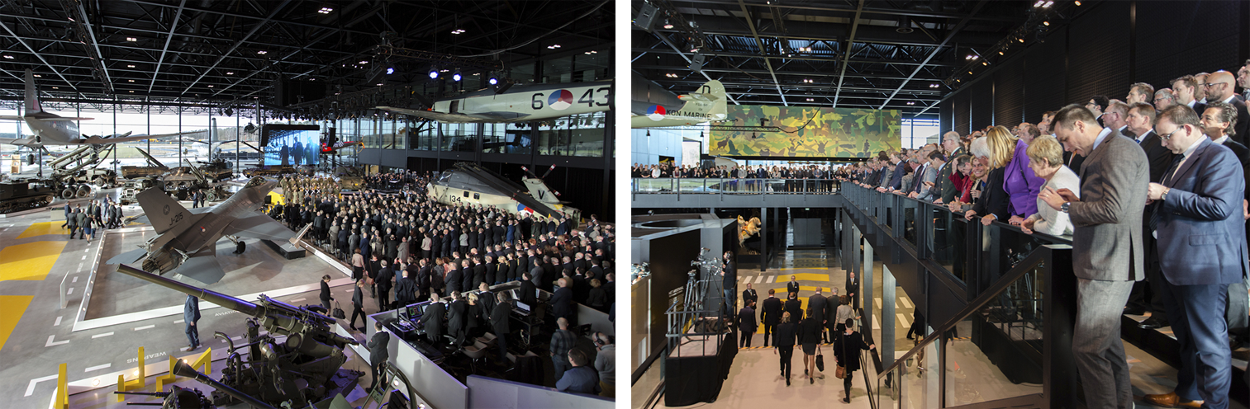 Voorafgaand werden de paar honderd genodigden met diverse filmbeelden meegenomen door de krijgsmacht van toen en nu. Militairen van de verschillende krijgsmachtdelen vertelden kort over hun persoonlijke belevenissen bij defensie. Een militair orkest ondersteunde het geheel met indringende live-muziek.