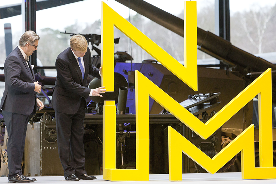 Buiten klonken 2 saluutschoten uit een antiek kanon. Binnen dwarrelden confettislierten over land- en luchtmachtvoertuigen. Koning Willem-Alexander opende donderdag 11 december het Nationaal Militair Museum (NMM) in Soesterberg. Hij plaatste daarvoor de ontbrekende letter N op het 3D-logo van het museum.
