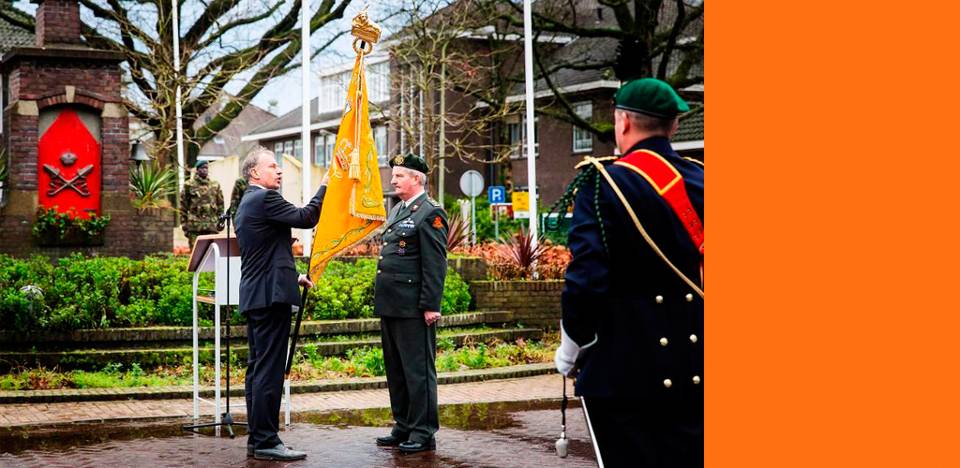 vaandel in ontvangst uit de handen van de burgemeester van Weert, Jos Heijmans.