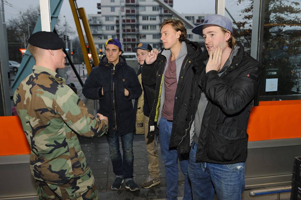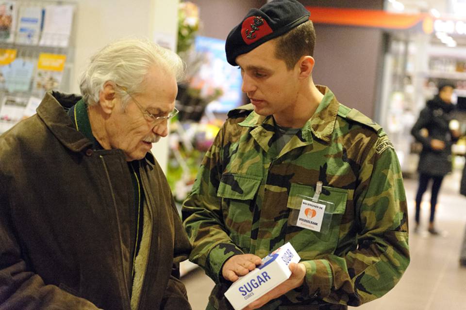 Jonge militairen verzamelen voedsel voor minder bedeelde stadgenoten