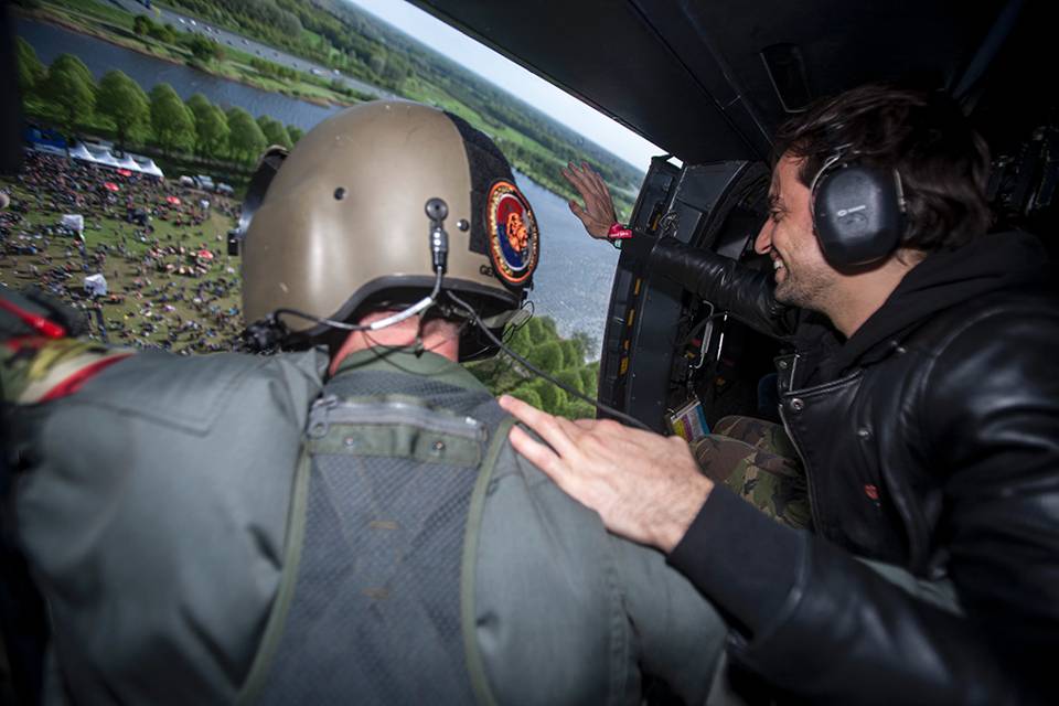 De Ambassadeurs van de Vrijheid speelden dankzij Defensiehelikopters weer op Bevrijdingsfestivals in het hele land. Een NH90- en 2 Cougar-transportvliegtuigen vlogen boyband MainStreet, rocker Jett Rebel en singer-songwriter Dotan rond. Het is inmiddels traditie dat Defensie zo haar verbondenheid met vrede en vrijheid onderstreept. Dotan brak afgelopen jaar wereldwijd door met ‘Home’. De Defensiekrant stelde hem 5 vragen over deze bijzondere dag.
