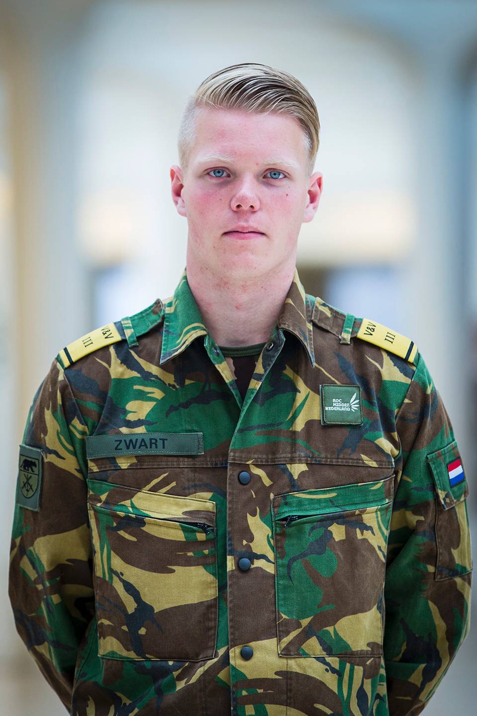 “Door alle bezuinigen bij Defensie twijfelde ik of ik wel aan deze opleiding moest beginnen. Daarom koos ik voor een opleiding binnenhuisarchitect. Leuk, maar niet mijn passie. Defensie vertelde me dat jong personeel altijd nodig is, dus na een jaar stapte ik over naar VeVa. Een goede opleiding met een volwassen benadering, erg fijn. Inmiddels ben ik geslaagd en mag ik over 2 maanden opkomen bij de Koninklijke Militaire School voor de opleiding onderofficier infanterie. Supergaaf en spannend om straks al leiding te mogen geven.”
