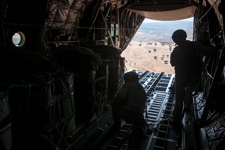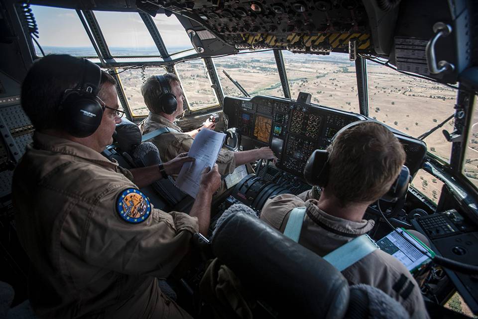 De vliegers: Met hulp van de computer navigeert het vliegtuig zo precies mogelijk naar de dropzone. De vliegers houden de loadmasters achterin op de hoogte van hun positie en de aanvliegtijd. De lading mag niet te vroeg en ook niet te laat vallen. Boven de dropzone vliegt het toestel laag en langzaam, ongeveer 240 kilometer per uur.