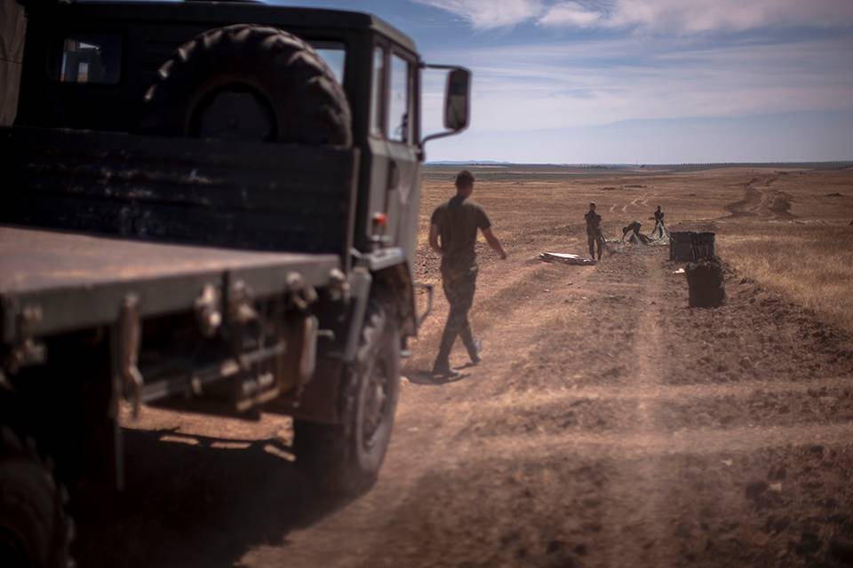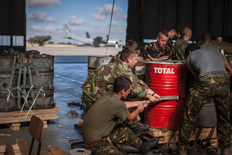 De opruimploeg: De Portugezen halen de parachutes in. Ze takelen de gedropte lading op hun vrachtwagens. Terug naar de basis. Om alles weer klaar te maken voor een nieuwe airdrop.