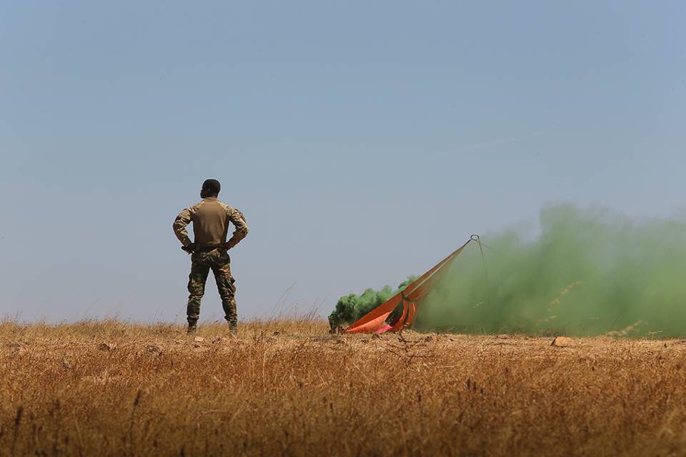 De tussenpersoon: De ground liaison officer is een landmachtmilitair bij het 336 Squadron van de Koninklijke Luchtmacht. Als tussenpersoon zorgt hij ervoor dat de luchtmachters en de landmachteenheid op de grond optimaal kunnen samenwerken. Dat is zeker belangrijk wanneer een airdrop plaatsvindt onder toezicht van buitenlandse collega’s. Die hanteren vaak weer andere procedures. Portugal is wat betreft sergeant-majoor René ideaal. “In deze uitgestrekte oefengebieden kun je nog geen blind paard raken.”