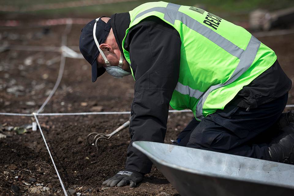 Inge keert vanaf oktober meerdere malen terug naar de Oekraïne. De missie maakt op haar een onuitwisbare indruk. “Ik denk dat niemand voorbereid is op een ramp van deze omvang. Ik zou gaan als controller, maar al snel zat ik op mijn knieën in het veld te zoeken. Metertje voor metertje groeven we in de aarde. Meestal samen met een forensisch expert van het LTFO. Hij kon duiden of datgene wat ik vond belangrijk materiaal was, bijvoorbeeld voor DNA. Op het laatst lag er voornamelijk schroot, maar ik heb ook stoffelijke resten gevonden. Ja, dat blijft je altijd bij."