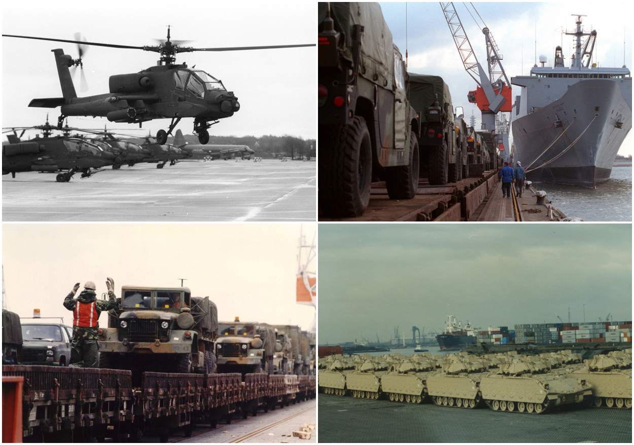Ook in Europa speelt Nederland een belangrijke rol. Via de havens van Rotterdam, Amsterdam en Delfzijl wordt in januari 1991 Amerikaans materieel vanuit Duitsland naar de Perzische Golf verscheept. Ruim 400 helikopters en 15.000 stuks groot materieel komen onder andere door de haven.
