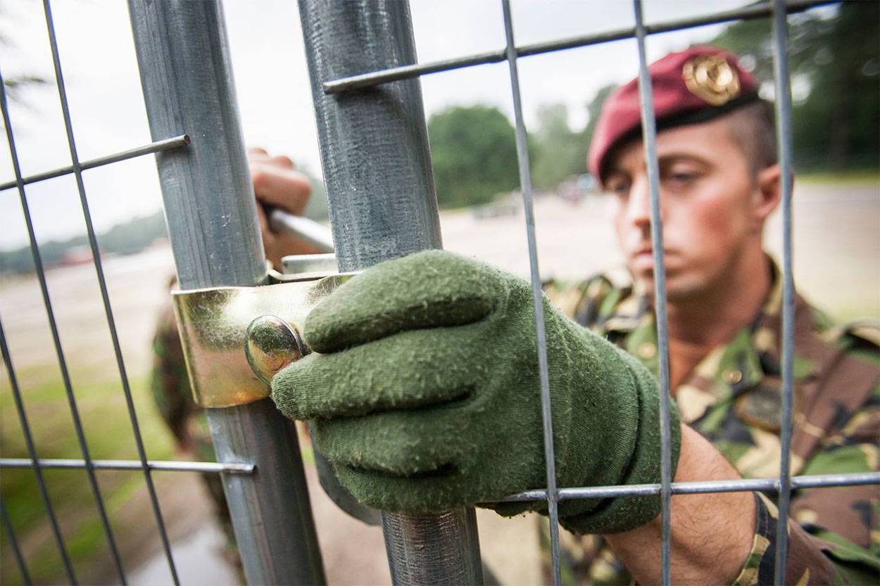Elitemilitairen van de Maritime Special Operations Forces wachten geduldig voor ze op mogen voor de spectaculaire opening van TechBase. Tijdens dit techniekevenement van Defensie werd 2 dagen lang alles gedaan om jongeren te enthousiasmeren voor een baan als technicus bij Defensie. Locatie: de oude RDM-werf in de Rotterdamse deelgemeente Heijplaat. Ondanks de regen trok het evenement veel belangstellenden. Lees meer hierover in deze Defensiekrant.