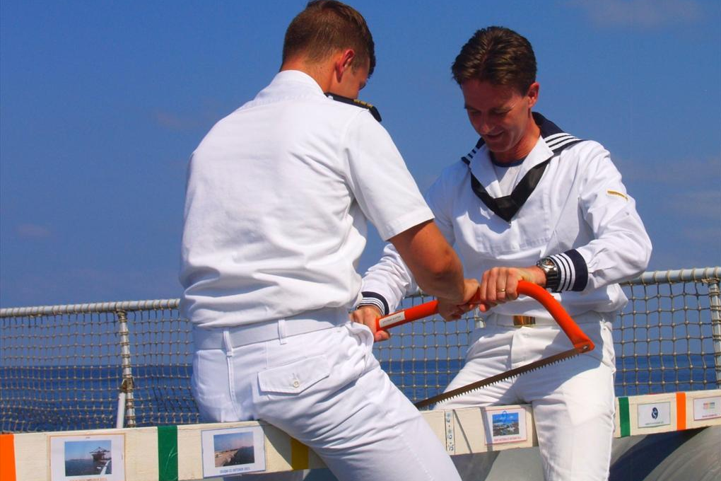 Aan boord van Zr. Ms. Groningen is de bijdrage aan de antipiraterijmissie EU Atalanta op traditionele wijze symbolisch doormidden gezaagd. De Groningen is dus op de helft. Op het helikopterdek moest een houten balk het ontgelden. Het stuk hout bezweek uiteindelijk onder het geweld van de jongste opvarende (Matroos Alex) en kapitein-luitenant-ter-zee Walter Hansen, de commandant. Als beloning voor het harde werk ontvingen beiden een nat pak.