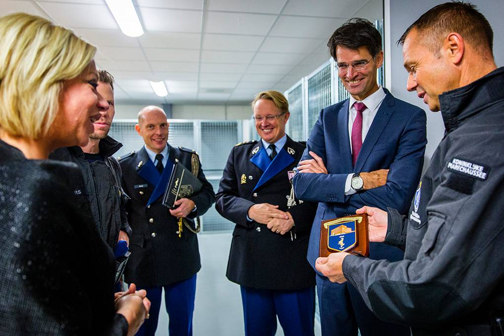 Minister van Defensie Jeanine Hennis-Plasschaert opent officieel het nieuwe hoofdgebouw van de BSB. Kort hierna krijgt de bewindsvrouw een rondleiding door het pand.