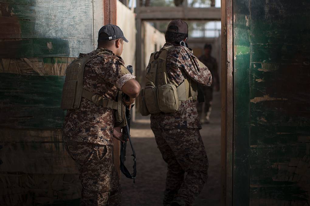 Voortdurend worden lessen geëvalueerd en aangepast. Zo hadden fastropen, abseilen en het ‘werken op hoogte’ een prominente rol in de opleiding. “Dat is nu significant anders”, zegt Mark. “De mentale component blijft belangrijk, maar we moeten niet vergeten waarvoor ze hier zijn. Deze eenheden worden aangemaakt om ISIS te verslaan; vanuit die gedachte werken we op.”
