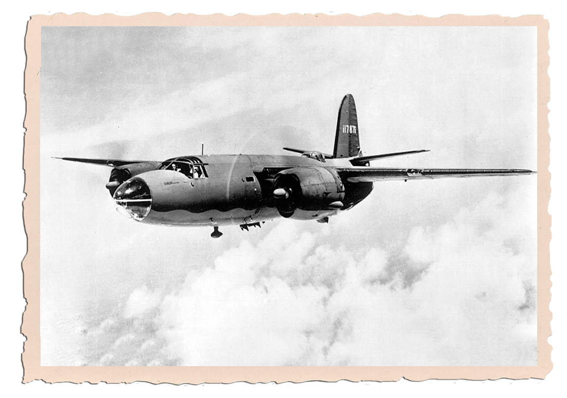 Waar nu jaarlijks miljoenen passagiers in het vliegtuig stappen op weg naar (zonnige) bestemmingen, stonden in de Tweede Wereldoorlog Duitse vliegtuigen. Het was dan ook een goed beveiligde vliegbasis. Eentje die de Geallieerden een doorn in het oog was. Daarom moest het vliegveld buiten gebruik worden gebombardeerd. De derde aanval op 13 december 1943 slaagde daar in. Op de foto een B-26 ‘Marauder’ bommenwerper. Meer dan 200 toestellen van dit type voerden de aanval van 13 december uit.