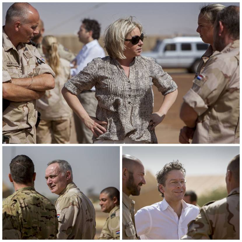Deze week kregen de troepen in Mali een bijzonder kerstbezoek. Commandant der Strijdkrachten (CDS) generaal Tom Middendorp reisde met minister van Defensie Jeanine Hennis-Plasschaert en de hoogste politieke baas bij Financiën Jeroen Dijsselbloem naar Mali om iedereen een hart onder de riem te steken. “Met 30 graden midden in de woestijn en zonder thuisfront kerst vieren maakt een uitzending bijzonder”, spreekt de CDS. “Met dit bezoek laten we zien dat we onze militairen niet vergeten. Tijdens de feestdagen bent u ver weg van huis om een land weer op de been te krijgen. Daar ben ik ontzettend trots op”.