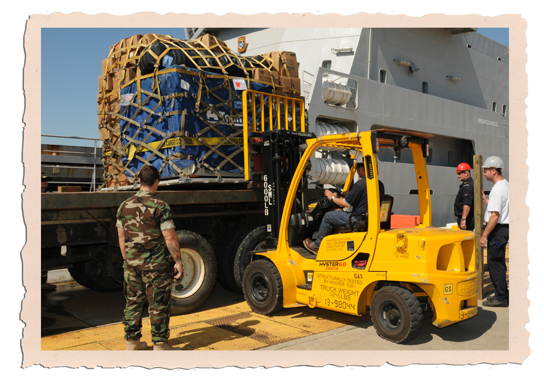 met hulptroepen en goederen van de Nederlandse-Antillen naar Haïti. Op de foto