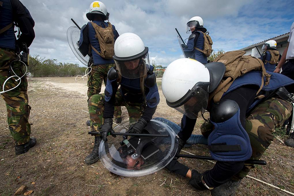 “Iedere infanterist moet deze skills zich eigen maken”, vindt brigadegeneraal Kees Matthijssen. Op de achtergrond gaat het 'beteugelen van woelingen' van start. “In de toekomst treden we steeds meer in verstedelijkt gebied op. Hier leren situaties te de-escaleren, kan straks goed van pas komen.” Waar ooit slaven zwoegden, ploeteren nu genisten over de zoutpannen. Naast een mooi plaatje leveren de militaire inspanningen ook informatie op. Door infrastructuur in kaart te brengen, te testen en metingen uit te voeren, weten de infanteristen onder meer hoeveel gewicht een brug of dam kan dragen. Waardevolle informatie… vooral tijdens een inzet. Het zware terrein vol kliffen, scherpe rotsen en stekelige begroeiing maakt tactisch verplaatsen vrijwel onmogelijk. De meeste operaties vinden dan ook 's nachts plaats. Onder dekking van de duisternis maken de specialisten gebruik van paden en wegen. Via water verplaatsen kan natuurlijk ook. Hoe goed geoefend en uitgevoerd ook, soms vallen er gewonden. Zaak is dan 'slachtoffers' zo goed mogelijk te stabiliseren en snel en veilig te evacueren. Vanuit een oud leegstaand hotel plannen de 'rode baretten' de verschillende oefenoperaties. “Zo luxe liggen we zelden; vrij van wind, geen muggen en een schitterend uitzicht”, aldus compagniescommandant kapitein Rob Morsink.