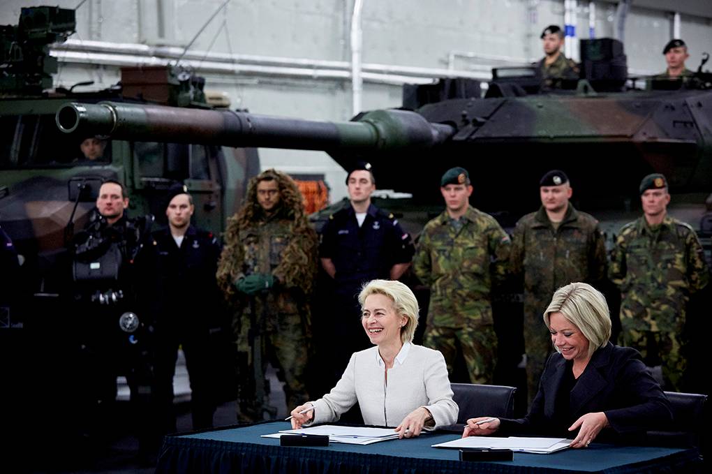 De ministers Hennis en Von der Leyen ondertekenden de overeenkomst tegen een achtergrond van militairen uit beide landen en 2 Leopard-tanks.