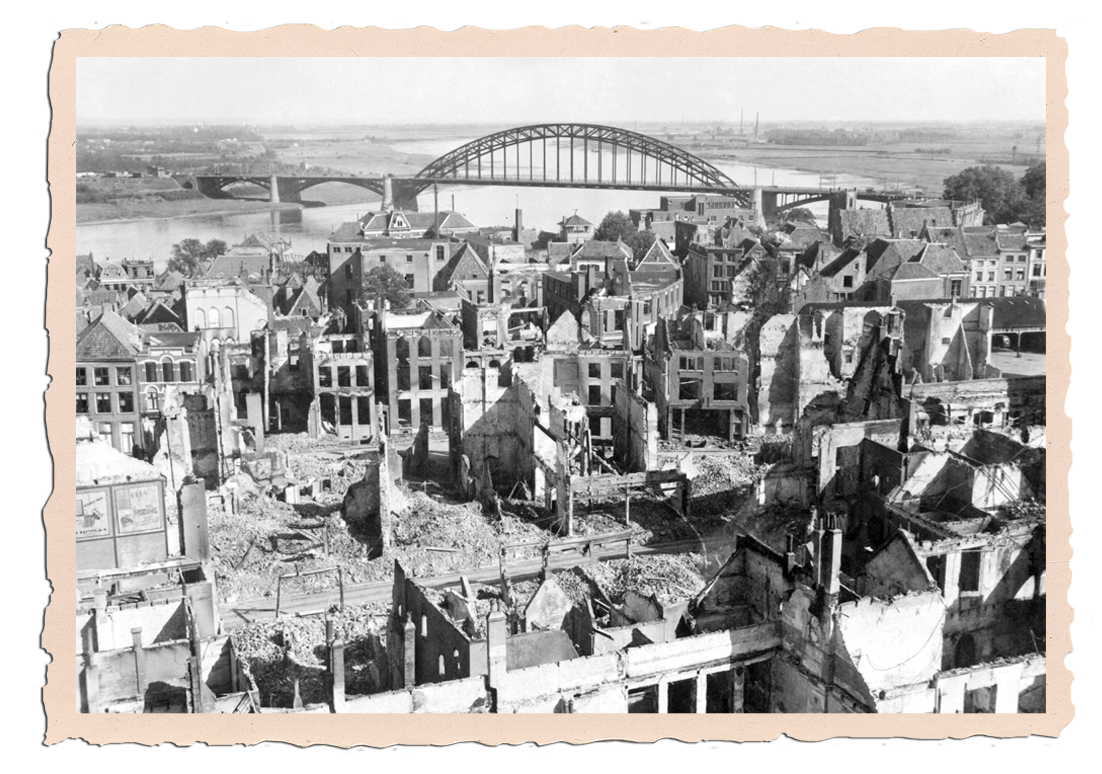 Met ruim 800 doden is het bombardement op Nijmegen 1 van de grootste van de Tweede Wereldoorlog. Het waren echter niet de nazi’s die de stad aanvielen. Amerikaanse piloten lieten hun bommen per ongeluk boven de Nederlandse stad vallen. Het oorspronkelijke doel? De Duitse stad Gotha, waar de Messerschmitt-vliegtuigen werden gemaakt. Door het slechte weer verloren de piloten elkaar onderweg uit het oog. Ze besloten hun bommen af te werpen op een alternatief. Waarschijnlijk dachten zij bij Nijmegen al boven Duitsland te vliegen. 800 doden en een verwoeste stad waren het gevolg. Vrijwel exact een jaar later bombardeerden de Britten per ongeluk de Haagse wijk Bezuidenhout. Hierover meer in de volgende ‘Uit de oude doos’.