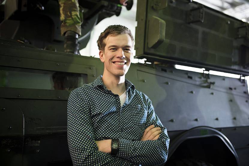 Robin Stammes (24). "Ik volg de HBO-studie werktuigbouwkunde. Die is zo ontzettend breed, dat ik nog weinig idee heb van wat ik wil en kan. Defensie is eerder op mijn pad gekomen tijdens een carrièrebeurs. Ik vraag me af wat voor soort technicus je precies wordt bij Defensie. Ik wil geen simpele ziel achter een machine worden. Ik wil graag een leidende functie in combinatie met technisch handwerk. Uitzendingen zijn voor mij geen optie, want ik ben familiegericht en wil geen trouwerijen en verjaardagen missen. Dus is er als burger wellicht een mogelijkheid. Ik twijfel tussen de luchtmacht en de landmacht. Hier kan ik uitzoeken wat ze werktuigbouwkundigen te bieden hebben. Ik heb gehoord dat de cultuur bij de luchtvaart wat informeler is. Dat spreekt me aan."