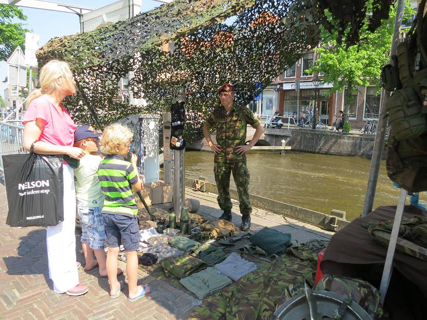 De radiocommercial werd regelmatig herhaald en uiteindelijk besloot ik om op woensdag 11 mei een kijkje te nemen bij de Landmachtdagen in Alkmaar. Want ik wilde nu toch wel eens weten wie z’n eigen leven in de waagschaal legt om anderen te beschermen. Het Waagplein in het hart van deze historische stad werd die dag tijdelijk omgetoverd tot een militaire enclave. Soldaten in allerlei rangen en maten vertelden de, in groten getale toegestroomde, burgers over hun dagelijkse werk.
