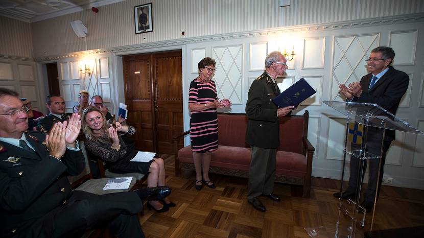 Meines ontvangt uit handen van de Israëlische ambassadeur Haim Divon het certificaat voor ereburger van de staat Israël.