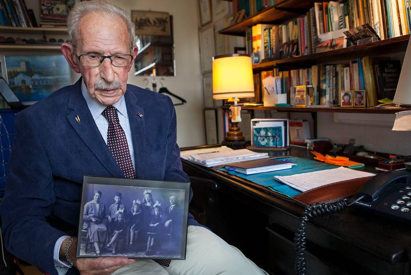 Meines houdt een oude gezinsfoto vast. De luitenant-generaal b.d komt uit een gezin met 4 zusjes.