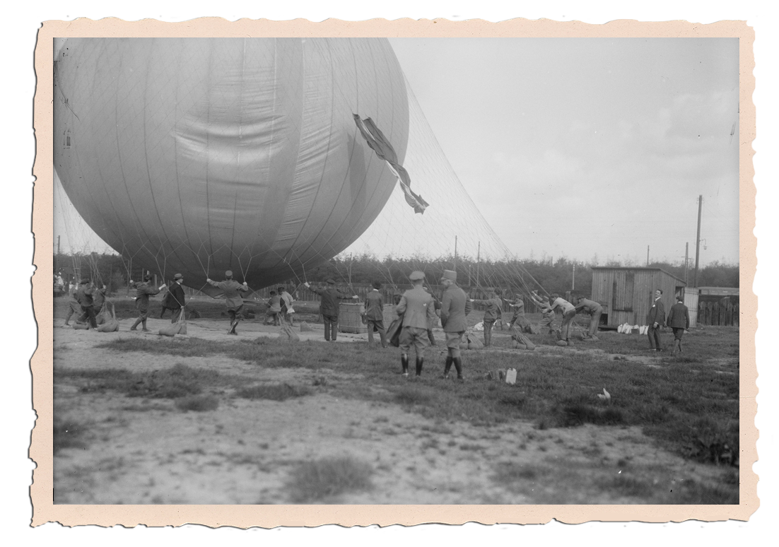 Nederlandse militairen inspecteren voor een verkenning tijdens de Eerste Wereldoorlog de luchtballon. Foto: Nederlands Instituut voor Militaire Historie