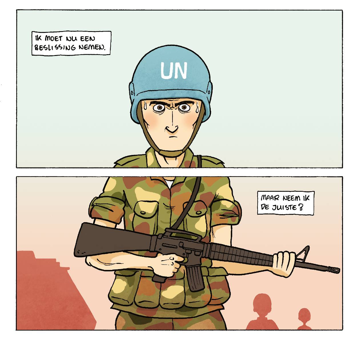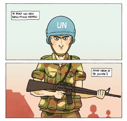 Het verhaal van (toen nog majoor) Ernst Schot speelt zich af in Eritrea, waar een VN-vredesmacht een gedemilitariseerd grensgebied bewaakt. De marinier krijgt opdracht samen met de Canadezen een verboden regio binnen te gaan, maar Eritreeërs houden de groep tegen. “Wat mijn verhaal denk ik laat zien, is dat je als militair soms tegen moeilijke beslissingen aanloopt. We hadden gewoon kunnen doorzetten, volgens het mandaat mocht dat. Maar dan liepen we het risico de relatie met de lokale politiek overboord te gooien.”