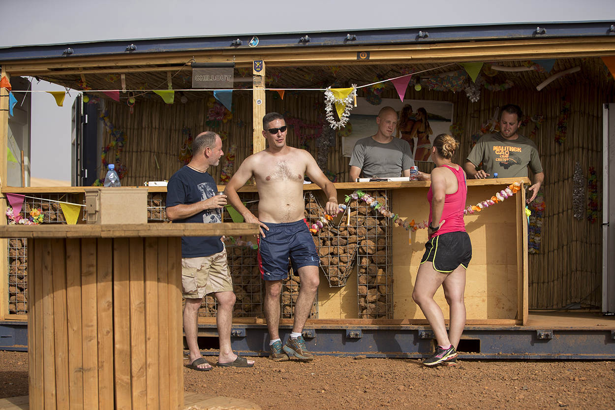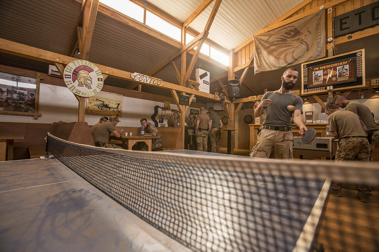 Ping-pong, tafelvoetbal, spelletjes, televisiekijken en slap ouwehoeren. In hun bar 'De Uitlaat' houden militairen - nadat de dienst erop zit - deze en andere militaire tradities hoog. Soms onder het genot van een biertje. Alcoholvrij. Dat dan weer wel.