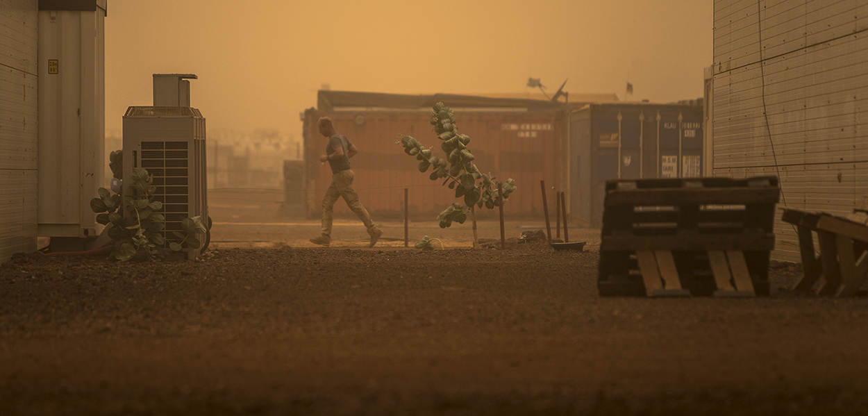 Als het opeens stoffig wordt en je begint te zweten, dan weet je - zelfs als je binnen zit - genoeg: er blaast een harmattan (hete woestijnwind) over het kamp. Omdat alle airco’s uit moeten, om de filters te sparen voor het fijne stof, wordt het binnen erg warm. Toch is buiten zitten ook geen optie, tenzij je wilt zandhappen.