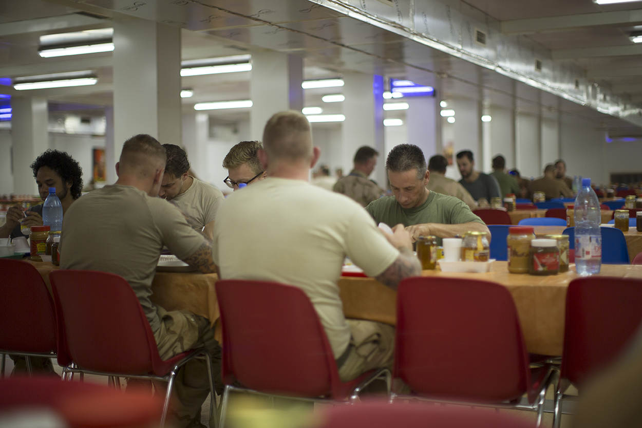 Drie keer per dag een verzorgd buffet; er zijn hotels waar je het met minder moet doen. Er zit dan ook een flinke logistieke operatie aan verbonden. Wekelijks werken de militairen een kleine 3.000 kilo vlees, 6.000 bekertjes yoghurt, 36.000 liter drinkwater, 1.900 kilo rauwkost en groente, 1.400 kilo fruit, 750 kilo aardappelen, 175 kilo rijst en 700 kilo brood weg.