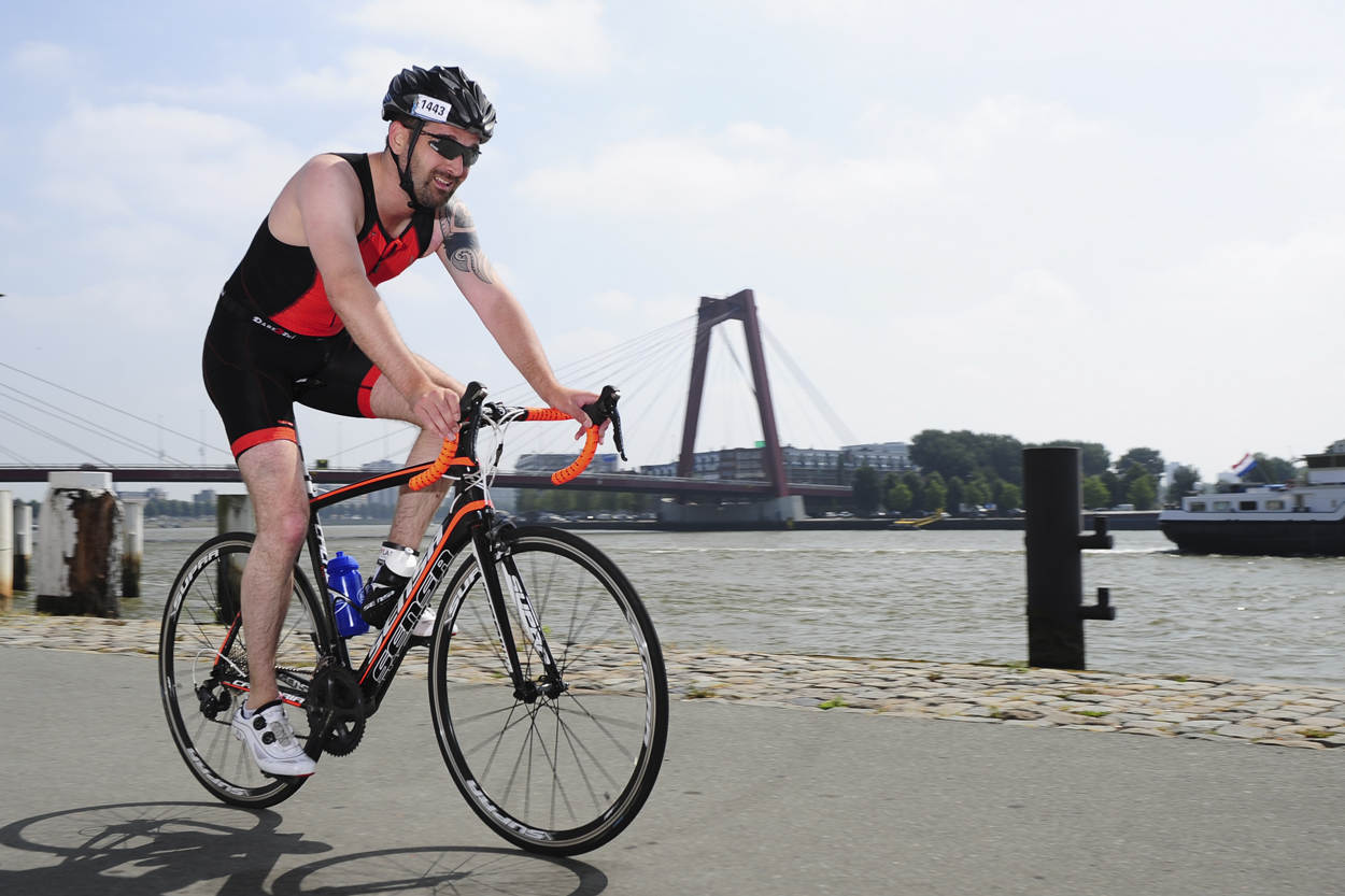 De triatlon in Rotterdam voerde Roy langs vele plekken die hij lange tijd alleen van een afstand kon bewonderen, zoals de Willemsbrug.
