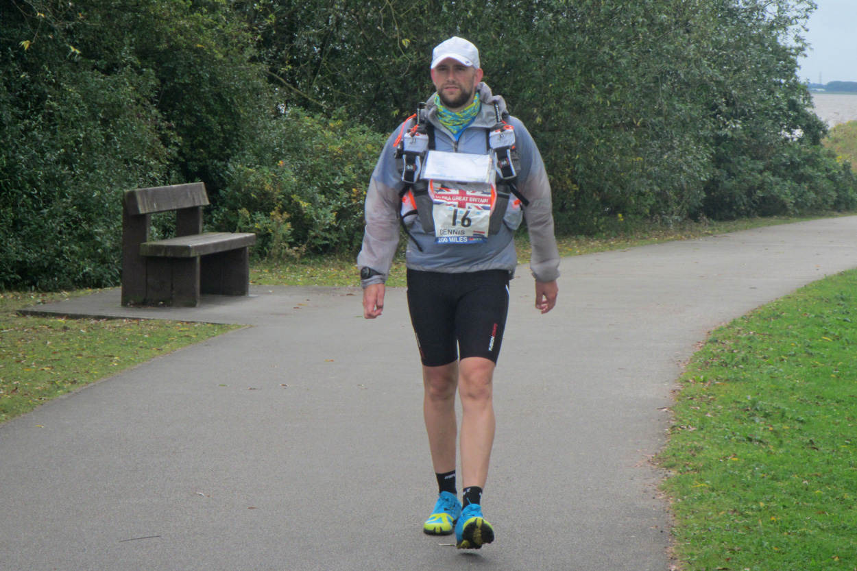 “Regenachtig en met veel wind. We startten met 24 lopers, onder wie 22 Britse, en begonnen aan de Trans Pennine Trail, die ons langs kanaaltjes, door bossen en over een gebergte voerde. De eerste 50 kilometer gingen erg goed. Ik had een lekker tempo, maar voelde wel wat pijntjes opkomen. Ik wist dat ik dit goed kon verbergen en door hier niet aan te denken ging het weer goed. De kou en de regen waren elementen die weleens nare dingen met zich mee konden brengen. Het was een selfsupported race. Water, eten, kleding moest je zelf meenemen. Wel waren er wat dropbags op verschillende checkpoints waarop je even kon slapen of de boel kon verversen. Ik kreeg een dip bij 55 kilometer. Emotioneel gebeurde er heel veel en ik wilde opgeven, maar Wayne en mijn verloofde wisten me op te peppen en ik kon weer verder. Ik rende langs de rivier Mersey onderweg naar Manchester, verdwaalde een paar keer maar ging door. Rond 21.00 uur regende het nog steeds en werd het donker. Ik trok wat warmers aan. Mijn darmen protesteerden wat, maar ik ging door en liep een donker bos in. Daar ging het lichtje uit. Om 23.30 uur, na ongeveer 18 uur lopen, werd ik wakker, verkleumd door de kou en nattigheid. Ik was gedesoriënteerd en toen ik mijn verloofde belde, kon ik haar vragen niet normaal beantwoorden. Mijn lichaam had het opgegeven en ik moest, na 96 kilometer, stoppen. Pas de volgende dag kon ik het opbrengen trots te zijn. Slechts 11 lopers, minder dan de helft, haalden de finish.”