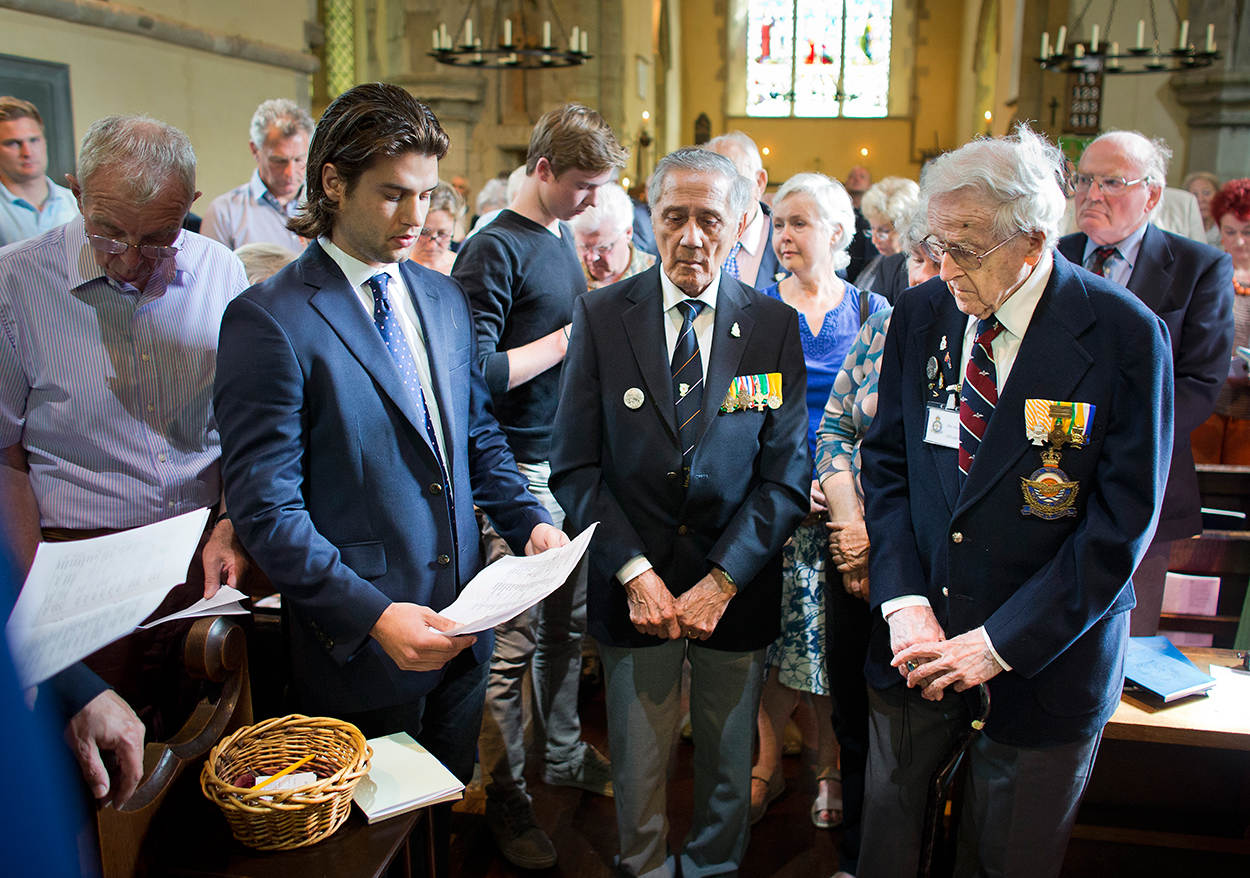 Met de vliegshow op RAF Dunsfold en het contact met Morven Voorspuy, zoon van een inmiddels overleden vlieger van 320, viel alles op z’n plaats voor een grotere reünie met de 4 veteranen en hun familie. Andre Hissink (97 jaar, 61 oorlogsvluchten, grote foto boven), Edward Hoenson (94 jaar, 89 oorlogsvluchten), Eduard Jacob (92 jaar, gronddienst) en Camille Stritzko (90 jaar, gronddienst) genoten zichtbaar van de B-25, de vliegshow en een herinneringsdienst in de historische kerk van Dunsfold uit 1294. “We zijn er inmiddels achter dat er nog meer Nederlandse oud-militairen van 320 uit die tijd in leven zijn: een in Ierland en een op Vancouver Island in Canada”, weet Defensiemedewerker en 320-kenner Everard Bakker. “Die gaan we zeker opzoeken.”