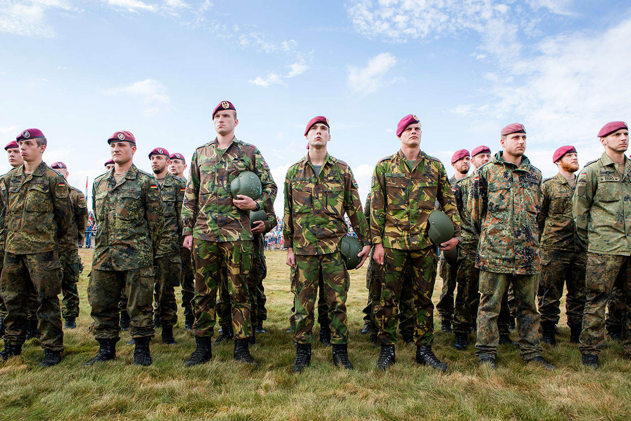 Boven de Ginkelse Heide dalen afgelopen zaterdag tijdens de officiële plechtigheden zo’n 1000 para’s neer. De herdenking biedt een mooie kans voor 11 Luchtmobiele Brigade om met internationale collega’s het grootschalige para-optreden te oefenen. Dat gebeurt in de dagen vóór de herdenkingssprong boven het Houtdorperveld, in de buurt van Ermelo. Bart en Martha Klein zijn er eens goed voor gaan zitten. “Je staat er toch bij stil dat we in vrede leven”, zegt Martha. “Al 71 jaar zonder oorlog”, vult haar man aan. “Dat moet je koesteren.”