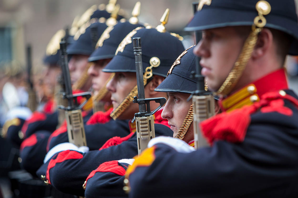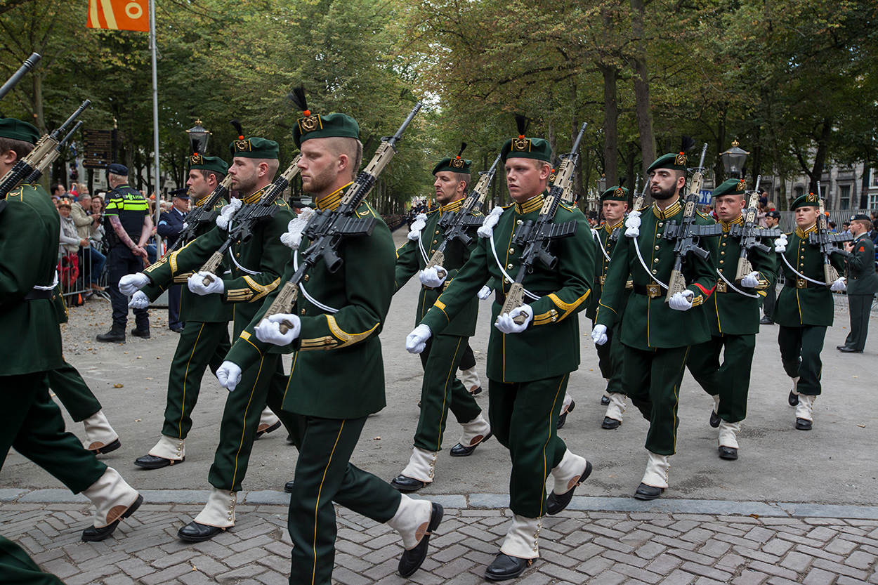 De bewindsvrouw gaf wel aan dat het logischerwijs nog een paar jaar duurt voor de maatregelen ook zichtbaar én voelbaar zijn. "Maar we komen wel op een punt waar we langzamerhand de positieve effecten van het extra geld gaan zien." De krijgsmacht was ook zichtbaar op Prinsjesdag. Op het Paleis Noordeinde, op de route naar het Buitenhof en op het Binnenhof. Zo’n 1500 man in totaal, aangetreden in hun beste uniformen. Afvaardigingen van onder andere de Garde Grenadiers en Jagers, het Korps Nationale Reserve en het Korps Mariniers. En niet te vergeten detachementen van de Koninklijke Luchtmacht en de Marechaussee. Voor de toeschouwers langs de kant was het in ieder geval een dag om nooit te vergeten. Defensiefotografen legden het militair vertoon vast.