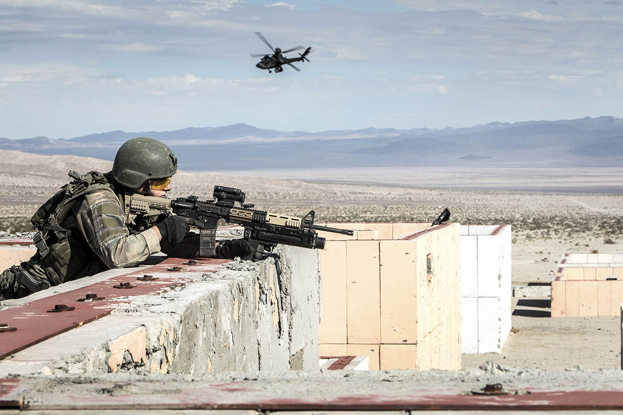 Met scherp - Op het oefenterrein in Californië kunnen troepen alles uit de kast halen. Tijdens de grote voorlaatste oefening schoten de Britten, Amerikanen en Nederlanders met scherpe munitie. Dat gold niet alleen voor de infanterie, maar ook voor de kanonnen, Apache-gevechtshelikopters, mortieren en Abrams-gevechtstanks. “Ik zit nu 8 jaar bij de mariniers, maar dit heb ik nog nooit gemaakt”, zegt korporaal Matthieu (niet op foto) nadat de kakofonie aan schoten is geluwd. Trainen, trainen, trainen - Black Alligator was een unieke mogelijkheid voor het 11e Raiding Squadron van het Korps Mariniers om hun zogeheten skills & drills fijn te slijpen. Een Raiding Squadron bestaat uit ruim 100 mariniers, die op hun beurt zijn onderverdeeld in 3 Raiding Troops. Zo'n troop bestaat dan weer uit 2 Raiding Sections van 14 militairen. Dat is de kleinste eenheid binnen het Korps Mariniers die zelfstandig kan opereren. Collega's en bondgenoten - De mariniers werkten nauw samen met een tankeenheid van het Amerikaanse marinierskorps en hun Britse collega's van 40 Commando. Sterker nog, de Nederlanders waren geïntegreerd bij de ruim 1000 Britten die met alle toeters en bellen richting Twentynine Palms waren afgereisd. Dit betekent dat de leiding van 40 Commando bepaalde wat de Nederlanders moesten doen tijdens de diverse gevechtsacties. Ondersteuning - De zeesoldaten van het 11e kregen hulp van ondersteunende eenheden zoals een antitankgroep en kregen extra vuursteun van een zogenoemd fire support team. Deze eenheid trok op met de Amerikaanse tanks en reed in Humvee-terreinvoertuigen met daarop een zwaar kaliber machinegeweer. Hiermee konden zij op grote afstand vuursteun geven aan de eigen troepen. Verder kreeg het 11e hulp van medische teams en logistiek personeel. In de States is alles groter. Immens is dan ook het woord dat het oefenterrein in Californië het beste beschrijft. Uitgestrekte vlaktes vol zand, rotsen en tanige struikjes. Her en der, ingeklemd tussen bergketens, zijn oefendorpen gebouwd. Eenheden kunnen hier met alles wat een leger in huis heeft, oefenen. “In Europa hebben we simpelweg niets vergelijkbaars”, zegt trainingsofficier kapitein Simon Long van 40 Commando. “Alleen hier kunnen we volledig geïntegreerd oefenen.” Richting de kou - Soms steeg het kwik in de woestijn tot boven de 40 graden. Maar binnenkort vertrekt het 11e Raiding Squadron richting Letland voor de multinationale oefening Silver Arrow, de temperatuur ligt daar eerder tussen de 0 en 10 graden. De oefening staat in het teken van de Very High Readiness Joint Taskforce. De voorhoede van deze NAVO-interventiemacht moet binnen 2 dagen in een crisisgebied operationeel zijn. Het 11e kan vanaf 1 januari 2017 hiervoor worden ingezet.