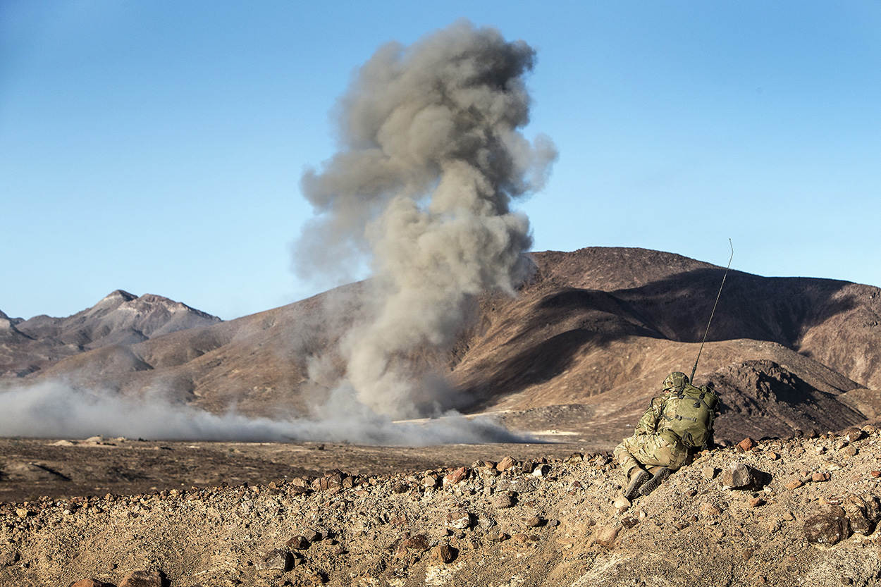 Mariniers bikkelen in Mojavewoestijn Californië