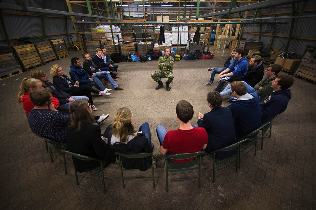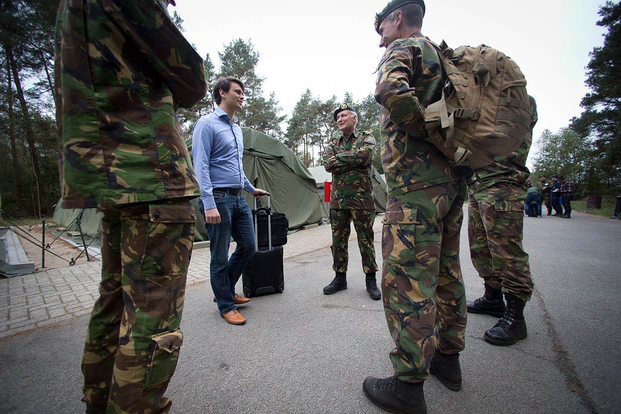 Zet 20 jonge, bijdehante politici van uiteenlopende partijen bij elkaar en de situatie ontaardt in no time in een mondelinge loopgravenoorlog. Niets is minder waar: de deelnemers zijn vooral geïnteresseerd. Politieke discussies zijn er weinig, een enkel plaagstootje daargelaten. Maarten van Nieuw Amerongen (SGP Jongeren): “Als je iets te klagen hebt, moet je bij de Jonge Socialisten zijn, die hebben het leger kapot bezuinigd.” Frank de Jong vertegenwoordigt namens Dwars (jongerenpartij Groen Links) het meest linkse geluid: “Wij hebben leden die overtuigd pacifist zijn, maar zien zeker de waarde van missies zoals nu in Haïti of Mali. Ik heb zelf ervaren dat Defensie een specialistische, goed getrainde organisatie is. Militair-zijn is echt een fikse baan, niet voor iedereen weggelegd. Wij zijn daarom niet voor de dienstplicht.”