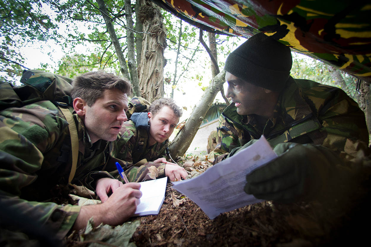 Tijdens de bivak spreken de deelnemers militairen van hoog tot laag: Commandant der Strijdkrachten generaal Tom Middendorp, maar ook de begeleidende instructeurs. Kevin Brongers (Jonge Democraten): “Juist door die mix kun je al je vragen kwijt.” De instructeurs zijn stuk voor stuk op uitzending geweest. Met hen ontstaan misschien wel de interessantste gesprekken. Ethische dilemma’s worden niet geschuwd. Moet je een gewonde vijand dezelfde behandeling geven als je gewonde buddy? Volgens de Conventie van Geneve wel. Een aanwezige Afghanistan-veteraan houdt zich wijselijk op de vlakte: “Je hebt theorie en je hebt praktijk.” Maar ook PTSS en dienstplicht komen langs, net als een paar stoere verhalen.