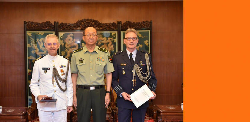 Kolonel Franken kreeg zijn onderscheiding opgespeld door plaatsvervangend directeur van het Chinese Bureau voor Internationale Militaire Samenwerking, generaal-majoor Ci Guo Wei.